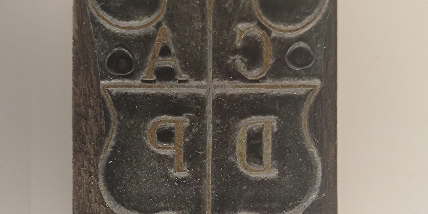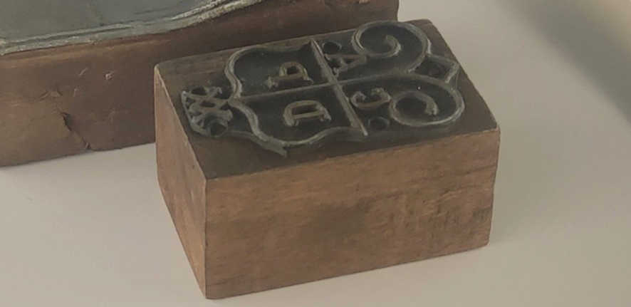 Esta matriz era utilizada para a impressão da marca CADP, um dos elementos identitários da Real Companhia Velha. Este objeto encontra-se em exposição integrado num conjunto alargado de matrizes de impressão e de outros elementos gráficos que demonstram a evolução da identidade gráfica da empresa.