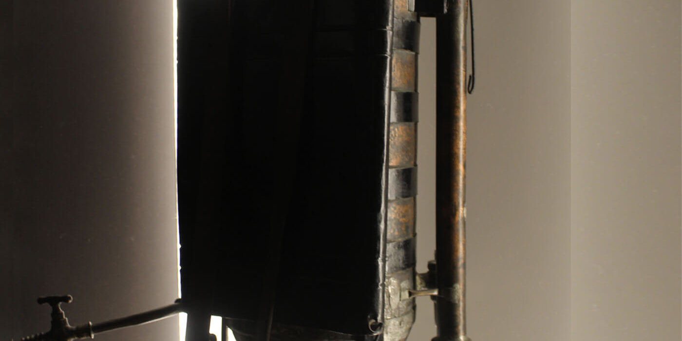 Cobre, metal e couro